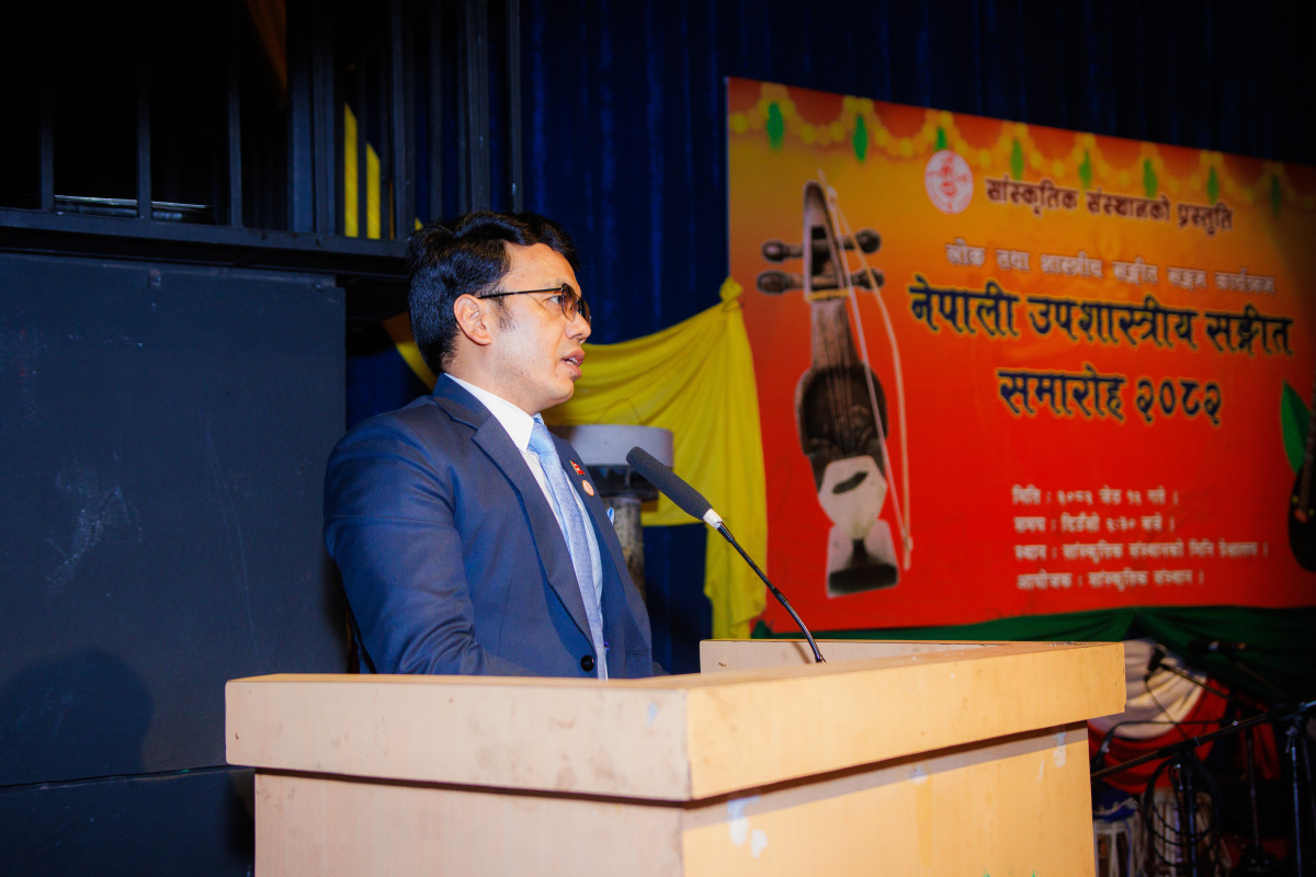 नेपाल सरकारको संस्कृति सम्बन्धी ज्येष्ठ निकाय सांस्कृतिक संस्थानद्वारा नेपाली संस्कृति भित्रको सिर्जनशील कला अन्तर्गतका हरेक विधाहरूलाई समान रूपमा विकास गर्ने उद्देश्यकासाथ मिति २०८२ जेठ १२ गते संस्थानको मिनी प्रेक्षालयमा आयोजना गरेको लोक तथा शास्त्रीय सङ्गीत सङ्गम कार्यक्रम “नेपाली उपशास्त्रीय सङ्गीत समारोह २०८२” सभ्यभव्य रूपमा सम्पन्न भएको छ । नेपाल सङ्गीत तथा नाट्य प्रज्ञा प्रतिष्ठान शास्त्रीय तथा परम्परागत सङ्गीत विभाग प्रमुख प्राज्ञ श्री डक्टर किरातज्यूको प्रमुख आतिथ्यतामा नेपाली सङ्गीत जगतका विशिष्ट व्यक्तित्वहरूको आतिथ्यतामा सो कार्यक्रम सम्पन्न भएको हो ।